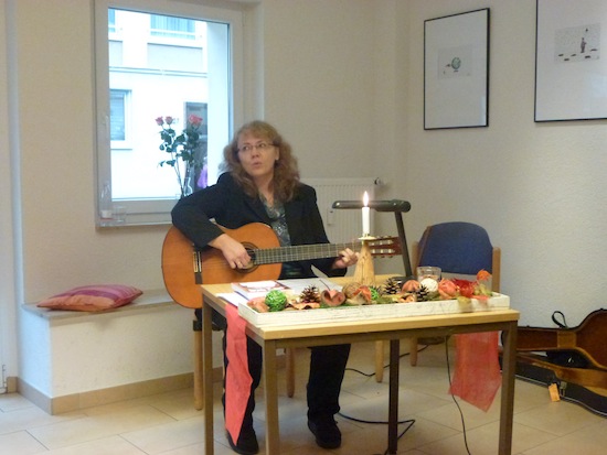 Passend zu den Totengedenktagen im November stellte Sylvia Hofmann ihr fast schon philosophisches Gedicht: „Wohin seid ihr gegangen?“ den lauschenden Zuhörern vor. Philipp Isaak begeisterte mit klassischen Stücken auf dem Klavier. Fröhliche Stimmung erzeugte Caroline Bernotat mit ihrer schönen Stimme und dem Spiel auf der Gitarre. Sie interpretierte Lieder in verschiedenen Sprachen, passend zum Motto des Hauses.