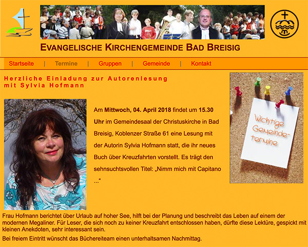 Sylvia Hofmann las aus ihren Reiseerzählungen und amüsierte besonders mit der Story einer Urlauberin, die ihren lieben Timo so vermisst. Dieser hätte nicht mit auf das Kreuzfahrtschiff gedurft, sein Benehmen ließ wohl etwas zu wünschen übrig. Er würde schmatzen, Menschen belästigen, immer herum laufen und überall seine Bedürfnisse erledigen, gab die Frau zu, um anschließend einzuräumen, dass sie ihn wohl doch endlich in einer Hundeschule anmelden sollte.