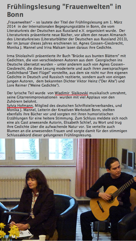 LESUNG am 01. April 2011 in Bonn bei der Internationalen Begegnungsstätte in der Quantiusstraße