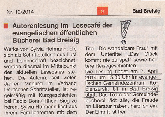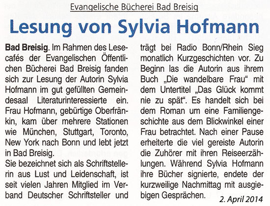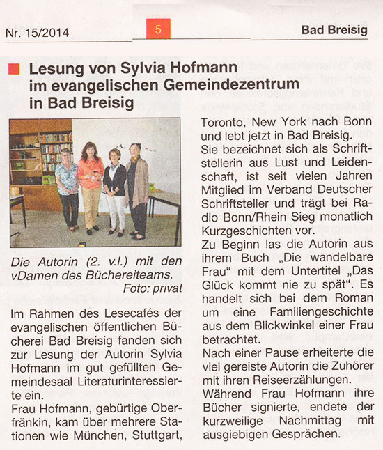 ........ Dritte Schriftstellerin im Bunde war Sylvia Hofmann.